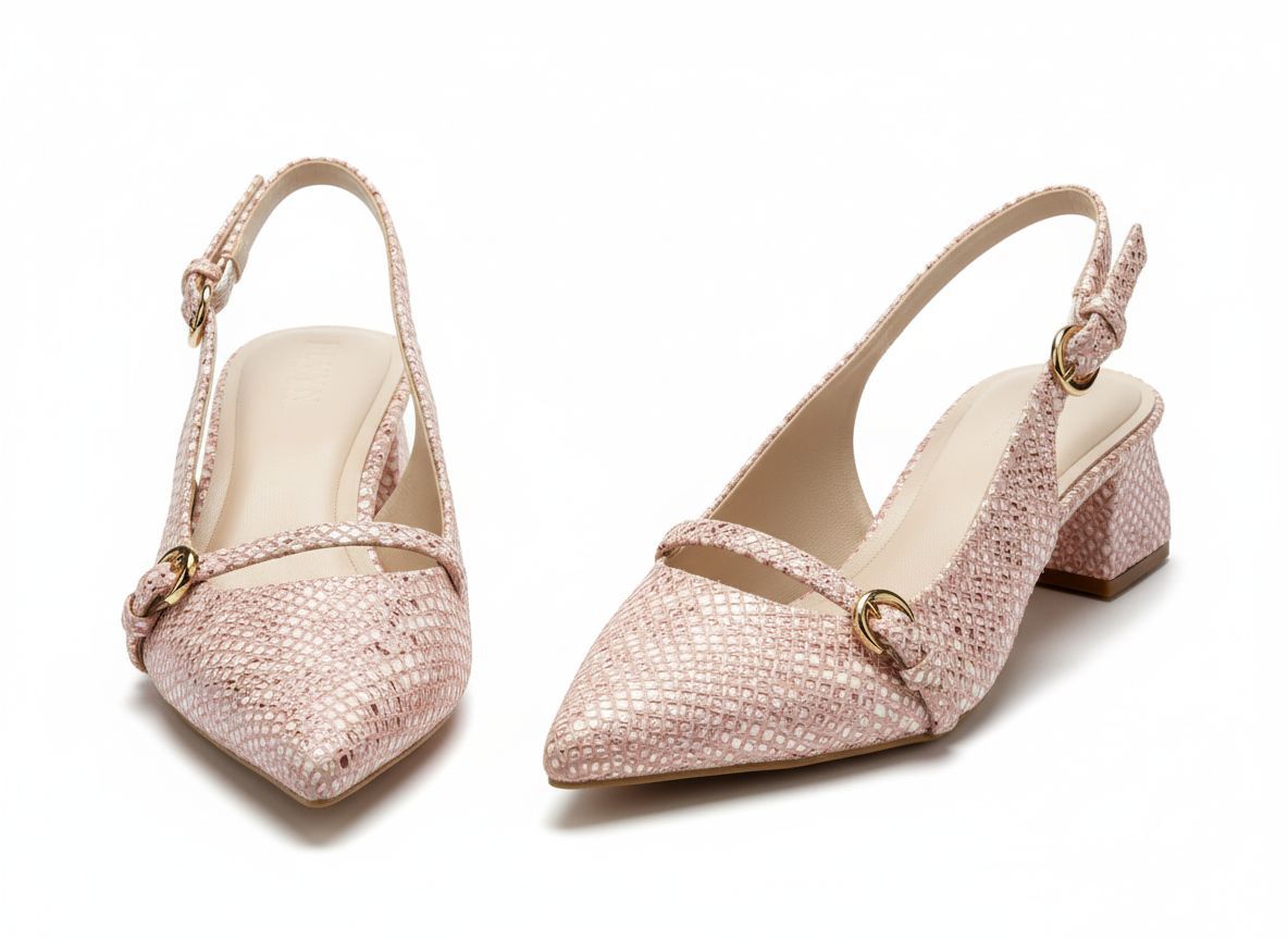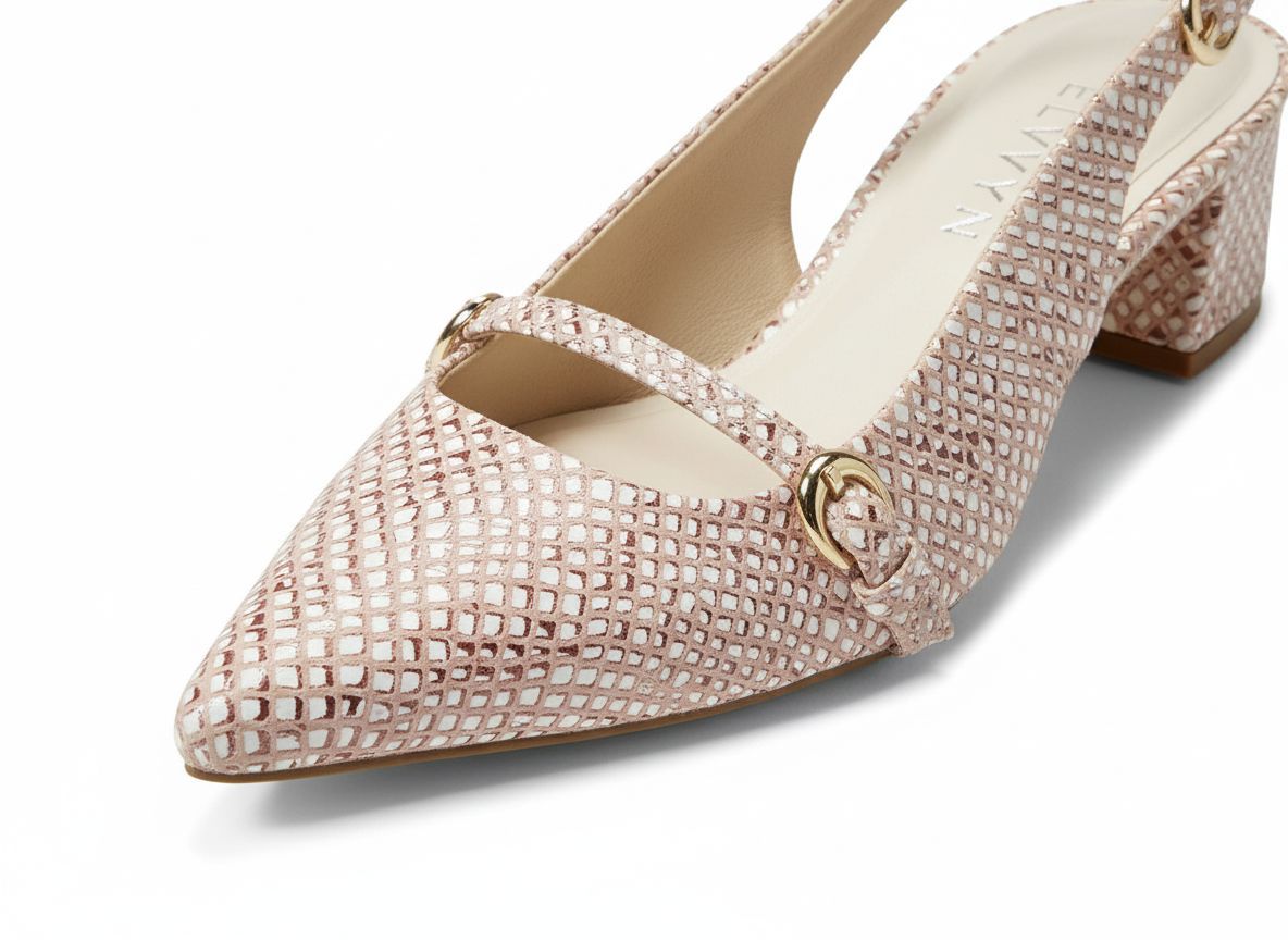 Elevate your everyday style with these sophisticated ELVYN slingback sandals. Featuring an elegant snake-print texture and a sleek pointed-toe silhouette, these shoes offer a modern twist on a classic design. The stable block heel provides comfortable height, while the adjustable buckle closure ensures a secure, personalized fit. Perfect for transitioning from office wear to evening outings with effortless poise
